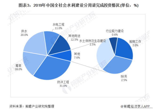 其中,防洪工程、供水、灌溉三者占总投资完成额的69%,为水利建设的主要投资方向。