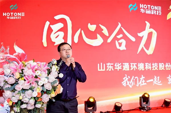 年会伊始,山东华通环境科技股份有限公司董事长毛允明发表了热情洋溢的新年致辞。先对过去一年全体员工的辛勤付出和努力表示衷心的感谢,并对公司在过去一年所取得的成绩进行了全面总结。过去一年,面对复杂多变的市场环境,华通公司秉持创新驱动、质量为本的发展理念,在产品研发、市场拓展、团队建设等方面均取得了显著突破。首座立体水质净化综合体也即将通水,进一步提升了市场竞争力,同时积极开拓国外市场,在伊朗、印尼、美国等国家的业务版图得到了有效扩展,为华通科技的持续发展奠定了坚实基础。
